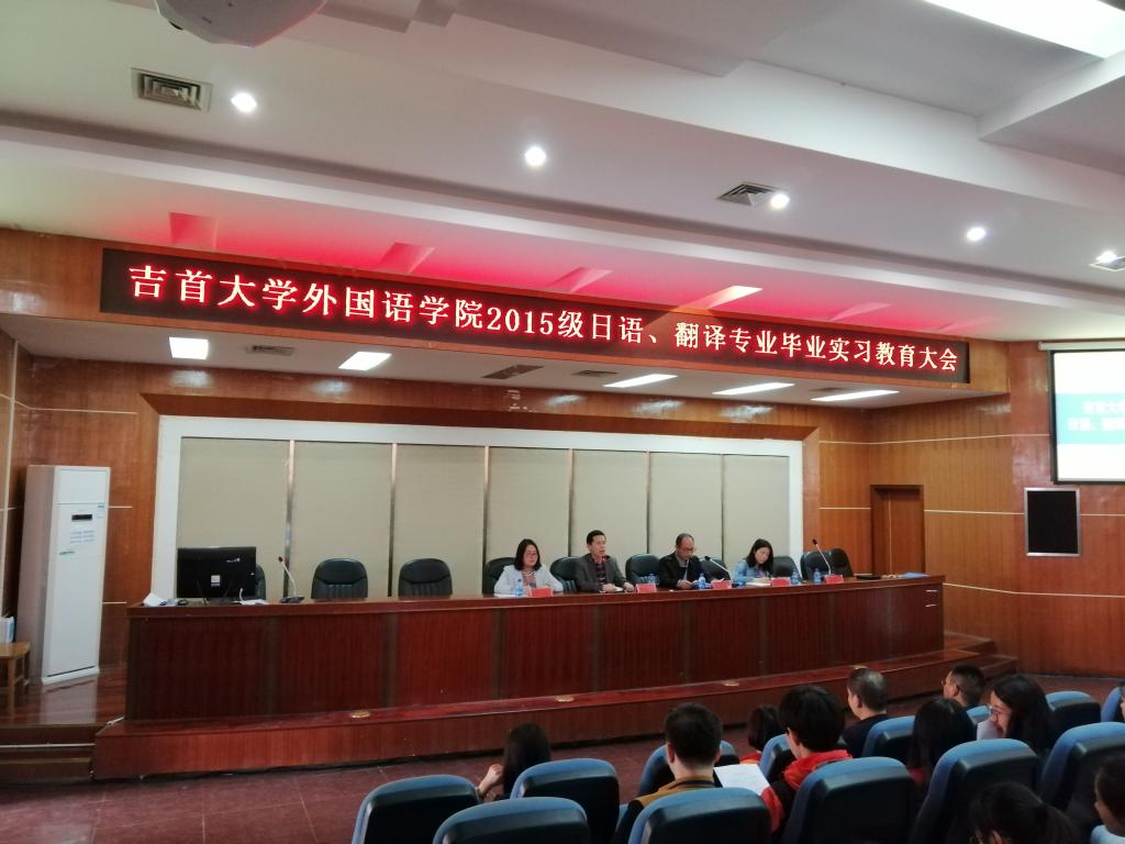 本网讯(通讯员 张光辉)为确保公司员工外出实习教学活动的顺利进行,3月27日下午,tyc522cc太阳成集团于逸夫楼多功能厅举行2015级员工毕业实习教育大会。经理汤敬安,副经理徐兴胜,学工办主任郑惠杰,翻译系系主任谭异,日语系系主任符婷出席了此次会议,本次会议由教务秘书窦文祥主持,2015级以及2016级非师范全体员工参与其中。