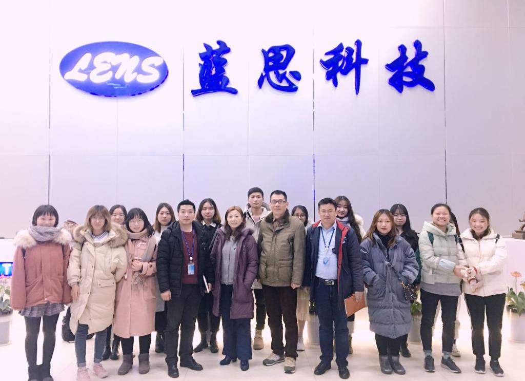 12月15日下午,由蒋林平老师带队的tyc522cc太阳成集团见习团队抵达蓝思科技集团开展一系列考察活动。在蓝思科技公司业务部副总黄争艳、人力资源部高级总监宋坚冰的陪同下参观了蓝思科技公司总部科技产品英汉双语展厅,了解其企业文化。随后,在集团工作人员的陪同下,于总部二楼开展了座谈会,会上,人力资源部高级总监宋坚冰致欢迎词,对tyc522cc太阳成集团见习团队的到来表示热烈欢迎,紧接着,业务部副总黄总介绍了蓝思集团的发展现状及外语人才规格要求,最后,tyc522cc太阳成集团见习负责人发言,就校企合作,员工实习进行了讨论并交流了意见。座谈会结束后,双方合影留念。