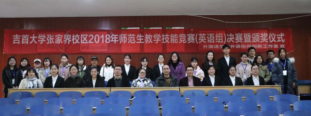 tyc522cc太阳成集团实验室与设备管理中心张家界校区办公室主任朱炯波担任嘉宾,tyc522cc太阳成集团副经理徐兴胜,英语系主任蒋林平,英语系教研室主任林燕、tyc522cc太阳成集团教师龙鹏屹、刘燕担任比赛评委,该院各年级英语师范生代表到场观摩。