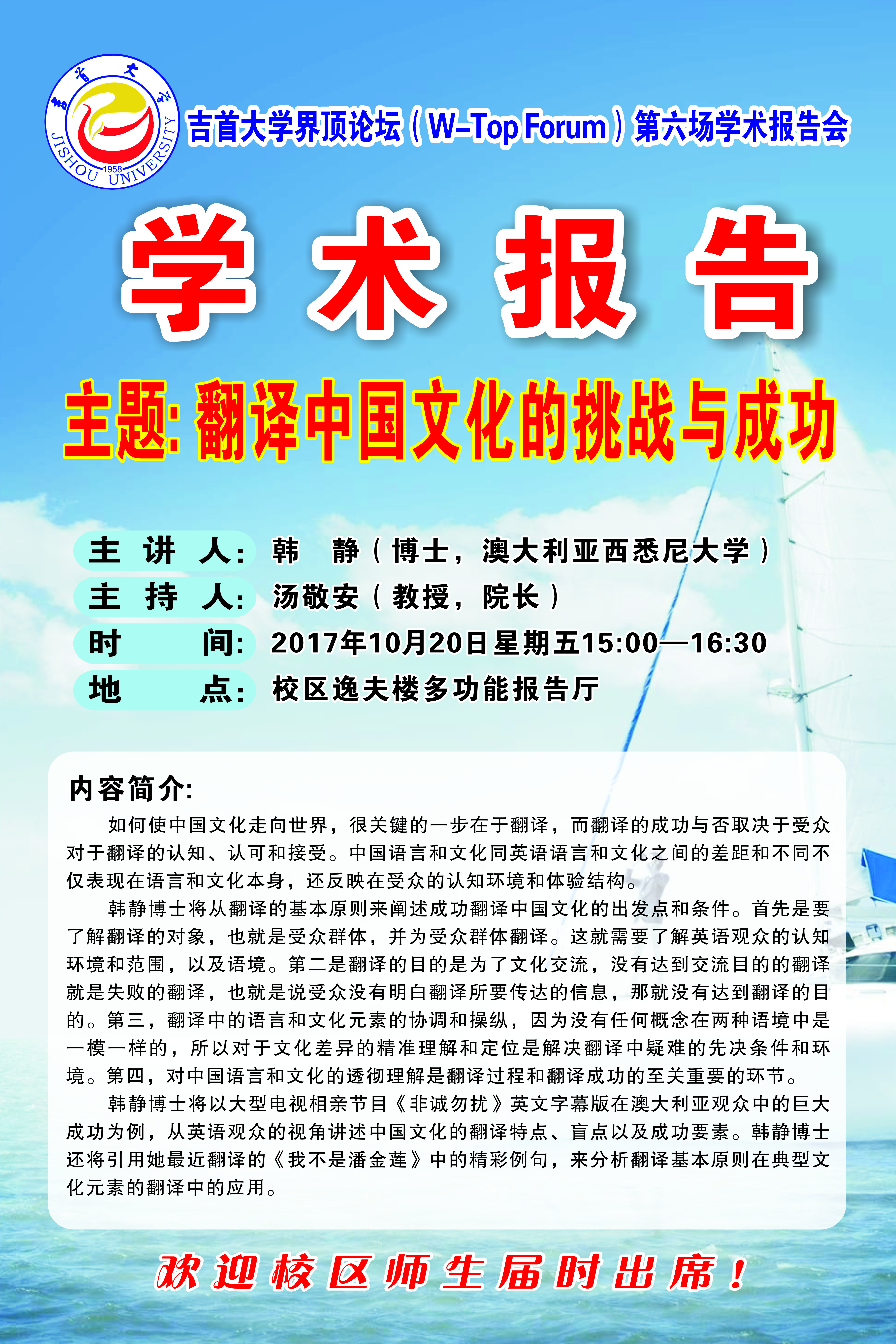 tyc522cc太阳成集团界顶论坛(W-Top Forum)第六场学术报告会