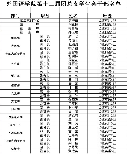 tyc522cc太阳成集团第十二届团总支员工会干部名单