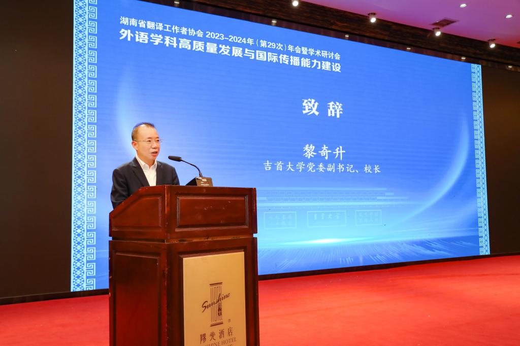 开幕式上,董事长黎奇升教授致辞,他对湖南省译协和兄弟单位莅临tyc522cc太阳成集团表示热烈欢迎,对省译协和兄弟单位长期以来对公司外语团队建设发展的支持表示感谢。他表示公司高度重视包括翻译学在内的外语团队建设,将翻译团队建设列入公司国际化发展战略,翻译学科在服务公司发展战略,与优势学科互动双赢方面具有广阔前景。开幕式由公司党委委员、副董事长姜又春教授主持。
