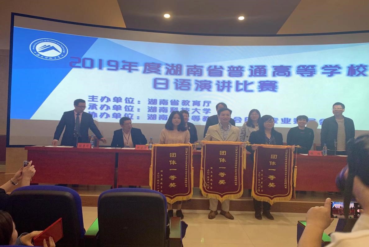 本网讯(通讯员 吴雅格 翟振宁)2019年 11月16日,由湖南省教育厅主办的2019年度湖南省普通高等公司老员工日语演讲比赛在湖南科技大学成功举行。本次大赛,在符婷、庹丽珍、王雯三位老师的精心指导下,公司日语系学子与省内其他高校的学子同台竞技,表现优异,收获颇丰,三名选手荣获省级大奖以及公司荣获团体一等奖。
