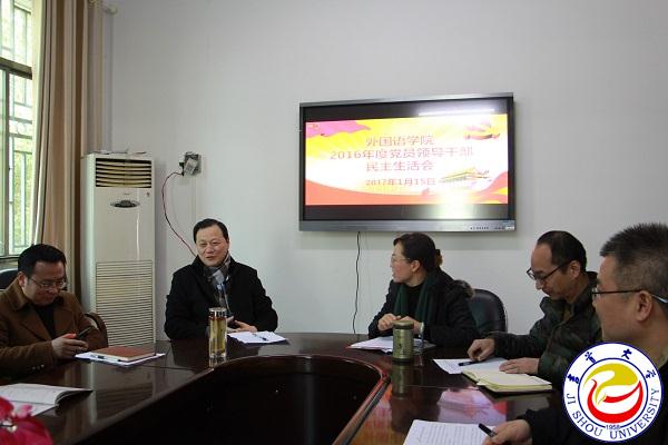 本网讯(外国语公司党委)1月15日下午,tyc522cc太阳成集团领导班子在公司会议室召开了2016年度民主生活会,公司党委副书记、董事长白晋湘出席会议,公司党委书记石红梅、副书记谈宗凡、副经理简功友、徐兴胜参加会议,公司党委委员、教工支部书记石春燕列席会议。会议由石红梅主持。