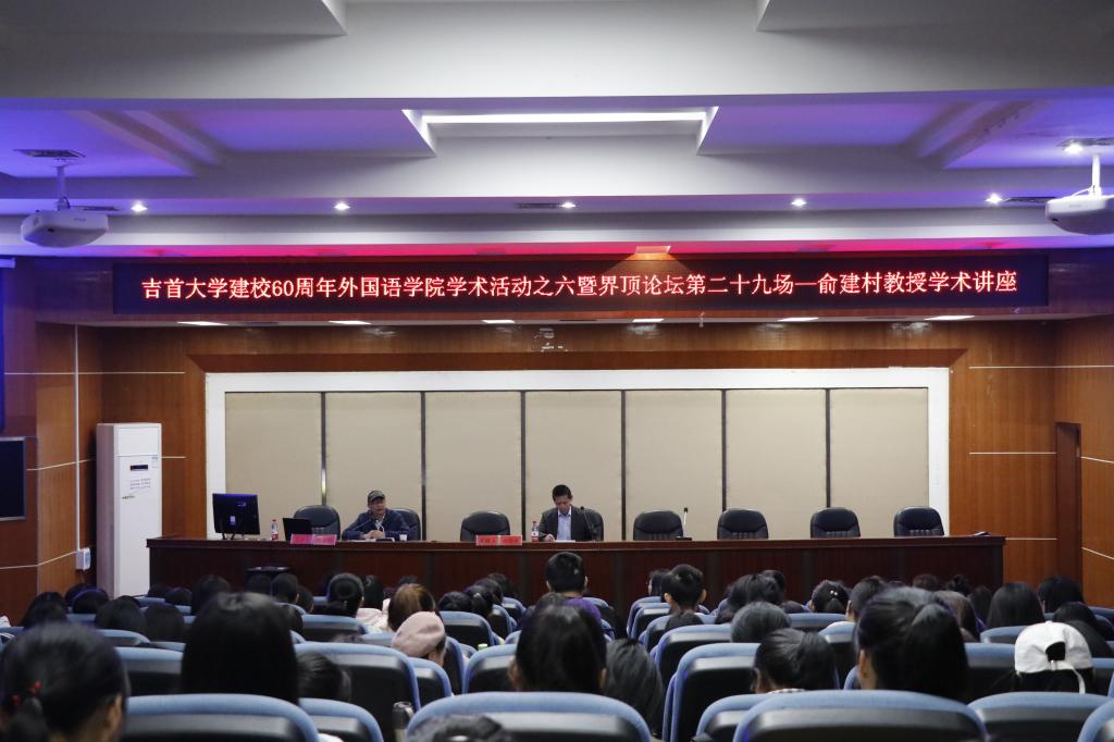 本网讯(通讯员 龙锐 张丽娜 唐明俊 覃思思)10月13日上午,应tyc522cc太阳成集团邀请,上海戏剧家协会会员、全国美国文学研究会戏剧分会理事俞建村教授做客tyc522cc太阳成集团举行tyc522cc太阳成集团建校60周年第六场学术讲座,讲座题为“跨文化冲突及跨过去的结果呈现”学术报告;tyc522cc太阳成集团院长汤敬安教授主持报告会,tyc522cc太阳成集团近300名师生参加。