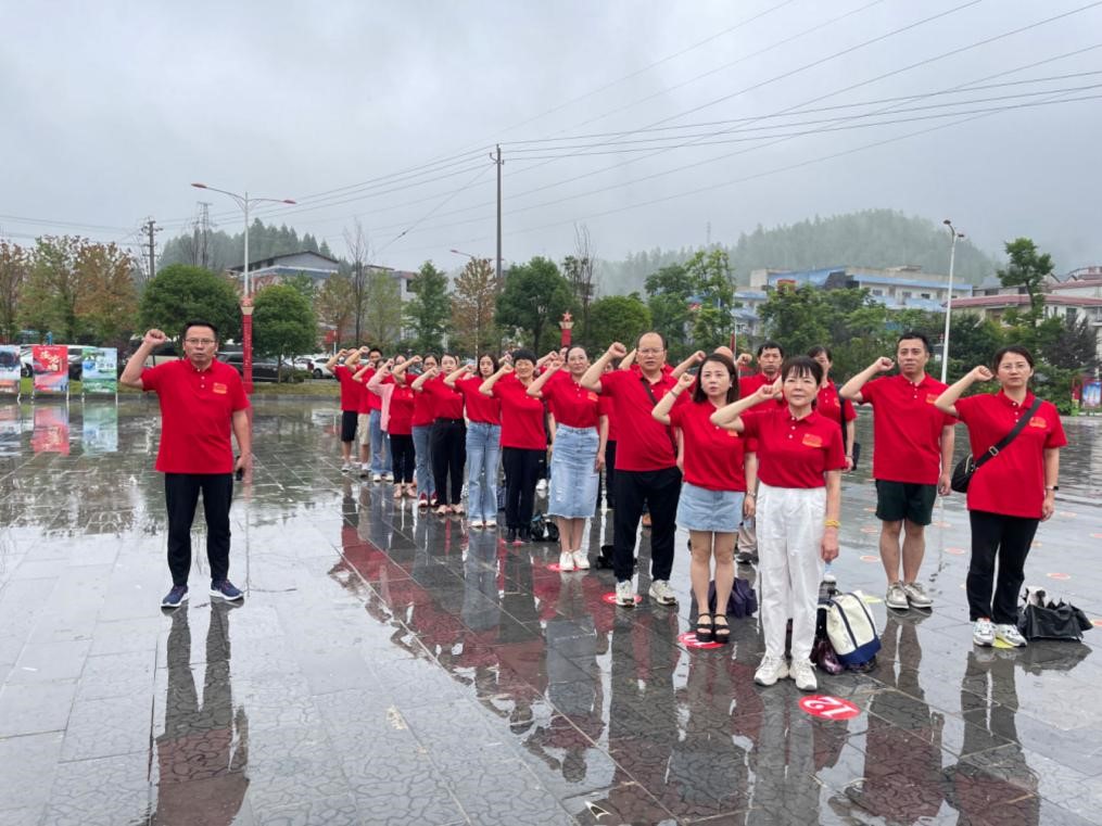 在这里,全体党员同志不顾细雨绵绵,在公司党委书记简功友书记的带领下重温了入党誓词。并在支部副书记奉红平同志的带领下,宣读了师德师风誓词。
