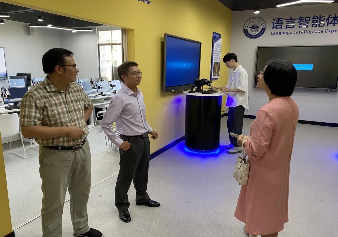 考察组在湖南工商大学人工智能语言服务实验室考察