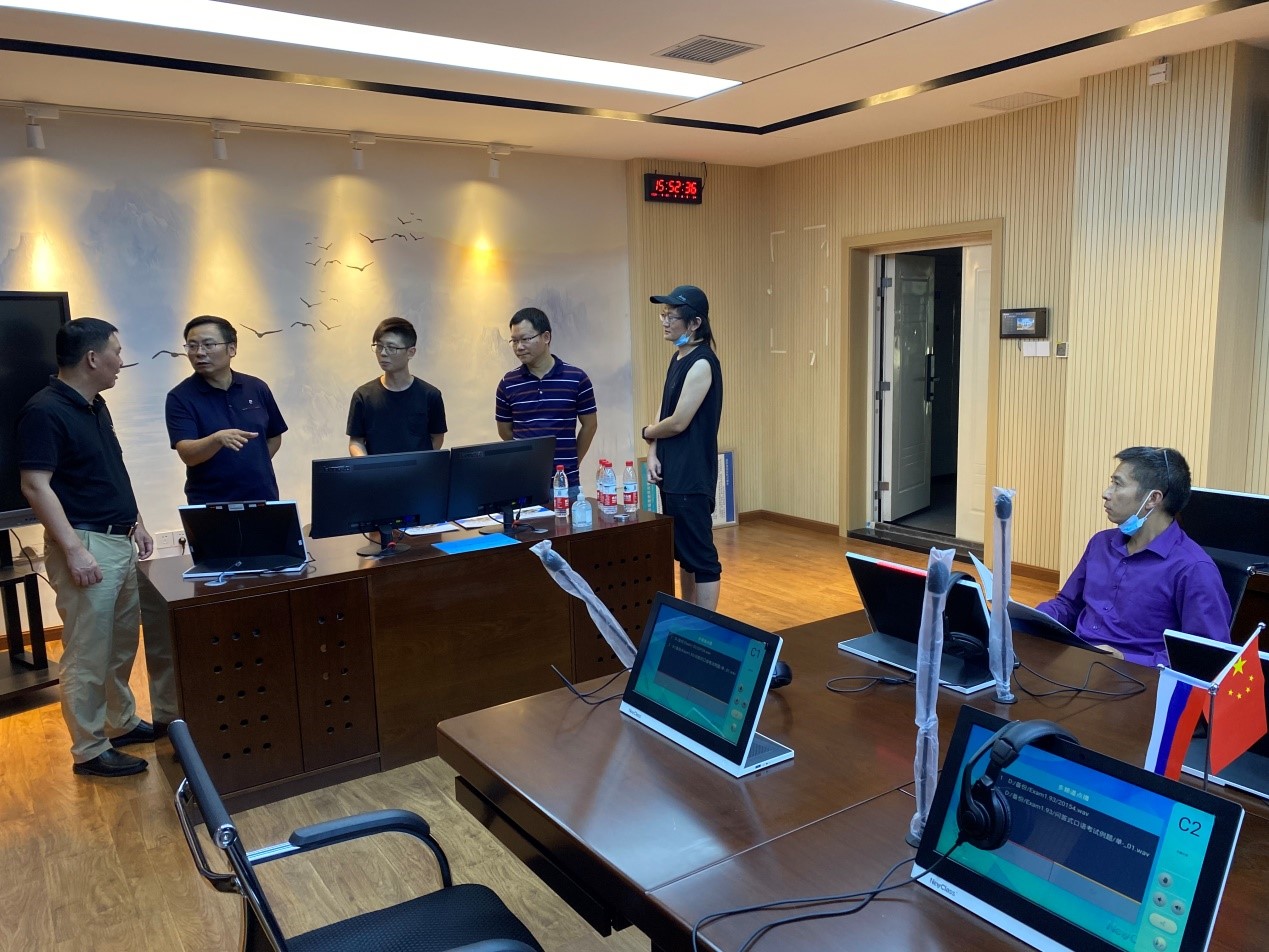 9月30日下午,一行人来到中南大学tyc522cc太阳成集团,对其新建成的同声传译实验室进行现场调研。过程中,对该实验室主要选用的 New Class 同声传译训练系统进行了全方面的考察,包括口译技能训练、影子练习、原语概述、译语概述、可视交替传译训练、文本视译、可视同声传译,会场模拟等各方面的功能。