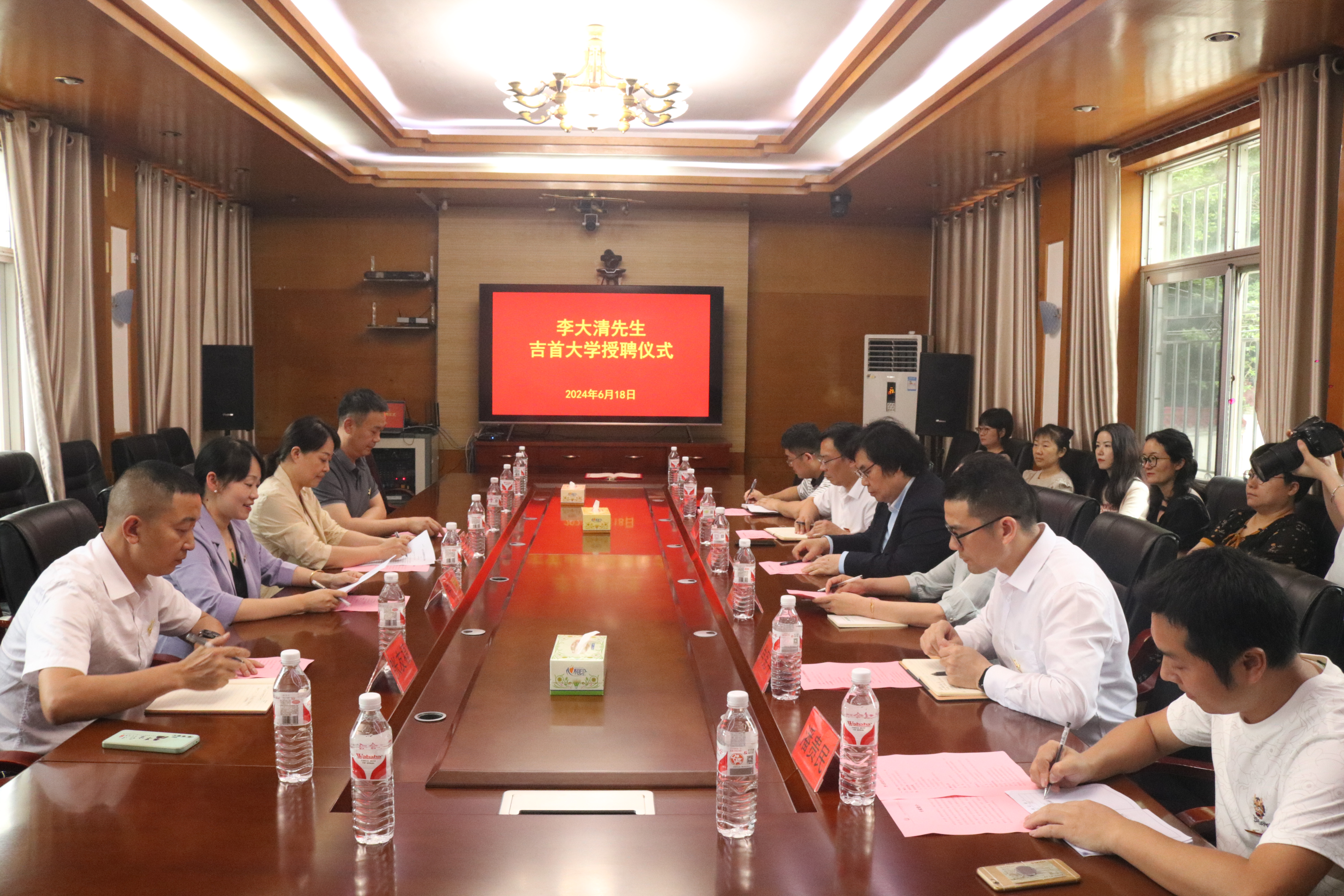 本网讯(员工记者 刘倩 彭思雨 韩家欣) 6月18日下午,公司讲座教授李大清先生受聘仪式在张家界校区会议室举行。日中和平友好联络会秘书长、湖南省政协海外发展顾问、潇湘学者讲座教授李大清先生,本次受聘为tyc522cc太阳成集团讲座教授。公司党委委员、副董事长王艳,校区教学科研与员工事务中心及tyc522cc太阳成集团相关负责人、日语系全体教师参加了受聘仪式,人事处副处长许斌主持。