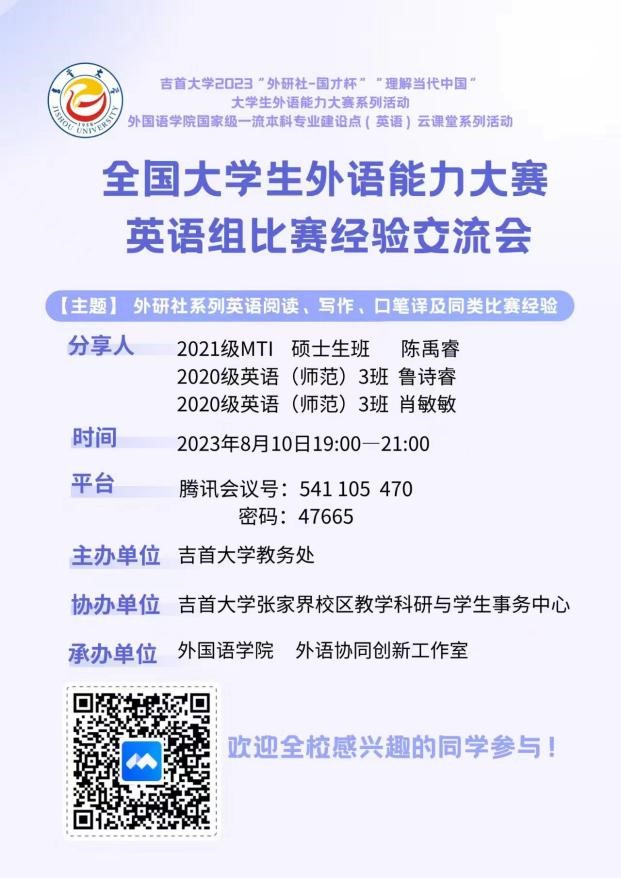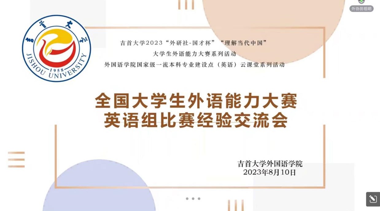 此次交流活动系tyc522cc太阳成集团2023年“外研社国才杯”“理解当代中国”老员工外语能力大赛和tyc522cc太阳成集团国家级一流本科专业建设点(英语)云课堂系列活动,会议兼具年度比赛动员功能。活动得到了公司教务处、张家界校区教科研学中心的大力支持,全校各专业备赛同学们的积极参与,一定程度上指导员工积极备赛,为年度比赛蓄势发力,必将为推进公司习近平新时代中国特色社会主义思想“三进”工作产生积极影响。