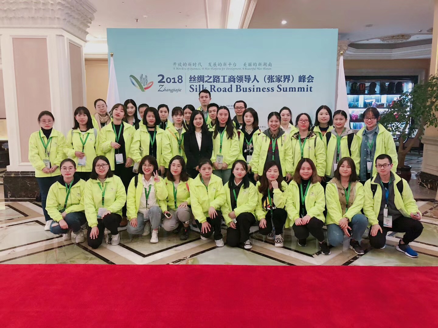 tyc522cc太阳成集团员工在2018丝绸之路工商领导人(张家界)峰会提供翻译服务