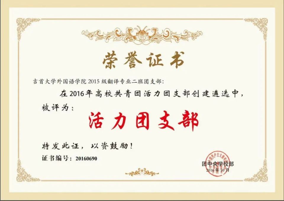 2015级翻译专业二班团支部荣获“全国高校共青团活力团支部”称号