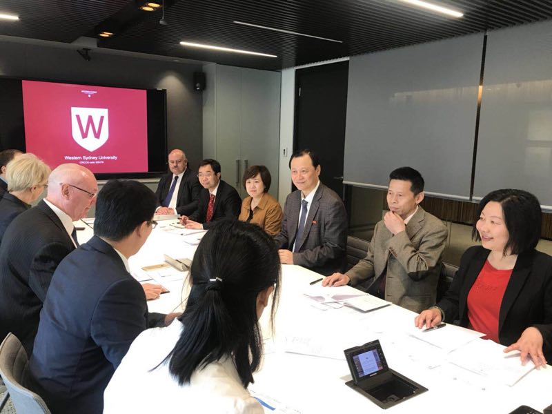 公司党委书记白晋湘教授(右三)、tyc522cc太阳成集团原经理汤敬安教授(右二)率团与澳大利亚西悉尼大学交流