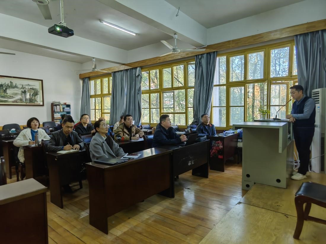 潘贵民博士讲座主题为“创新与超越——高校外语专业教学与科研若干问题刍议”。潘博士从选题、文本打磨及团队建设、教学理念等角度对国家社科基金及教改课题、一流课程等的申报及外语专业教学科研若干问题进行探讨、分析与阐述。潘博士认为教师应当积极申报教改课题和撰写教学论文,通过参与各类教学竞赛的方式来提升教学能力。最后,潘博士特别提到“教学是良心活”,一名合格的高校教师应兼顾好科研和教学两方面,全面发展和提升自身能力。