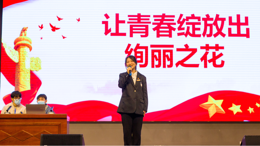 图为tyc522cc太阳成集团选手樊珠同学演讲现场