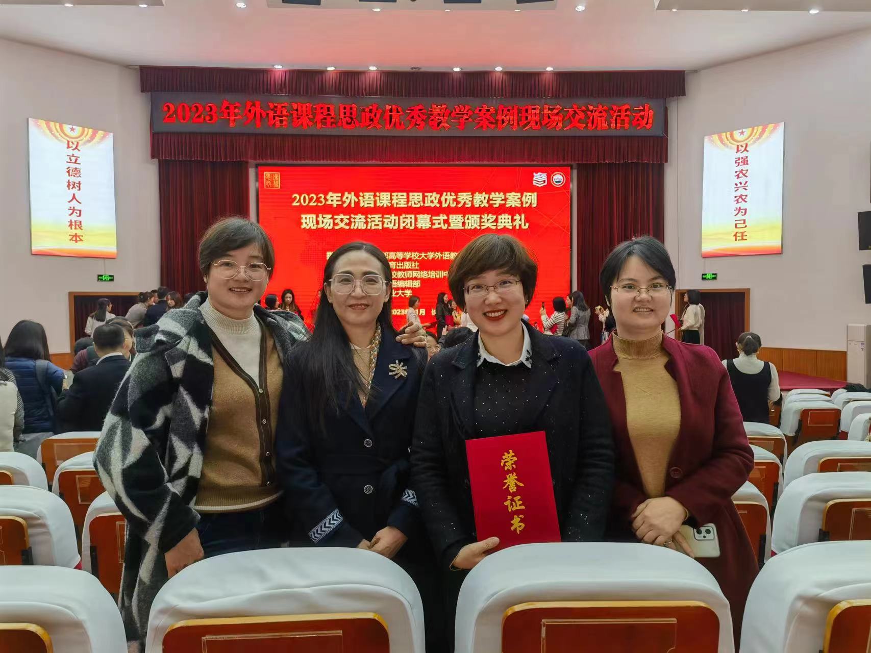 (通讯员 田建平)11月10-12日,2023年外语课程思政优秀教学案例全国交流活动在湖南农业大学举行,公司教师彭洵、苏根英、田建平、罗蔓、马小燕团队荣获大学英语组特等奖,这是公司在此项赛事中的新突破。